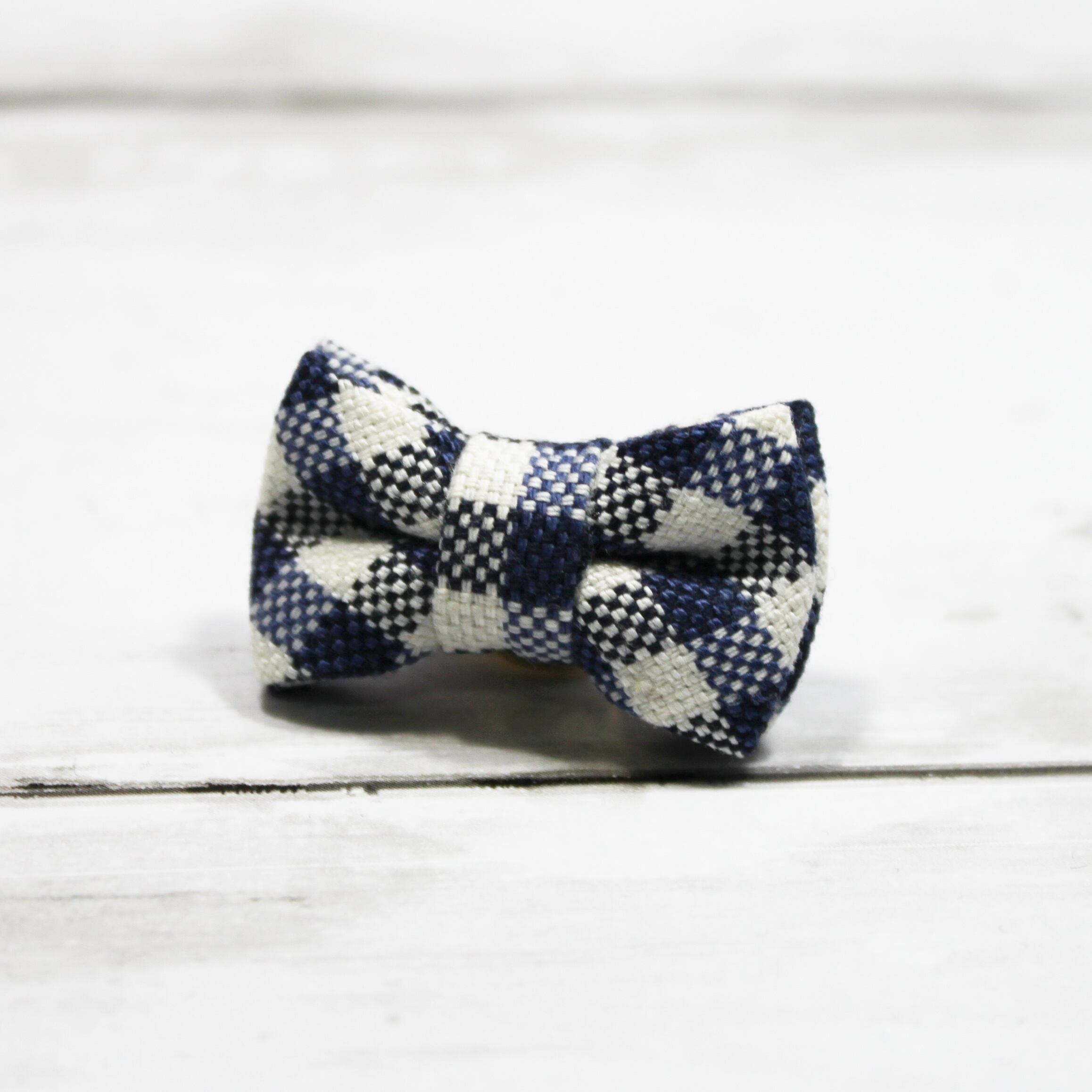 蝶ネクタイ型ラペルピン ブルーギンガムチェック